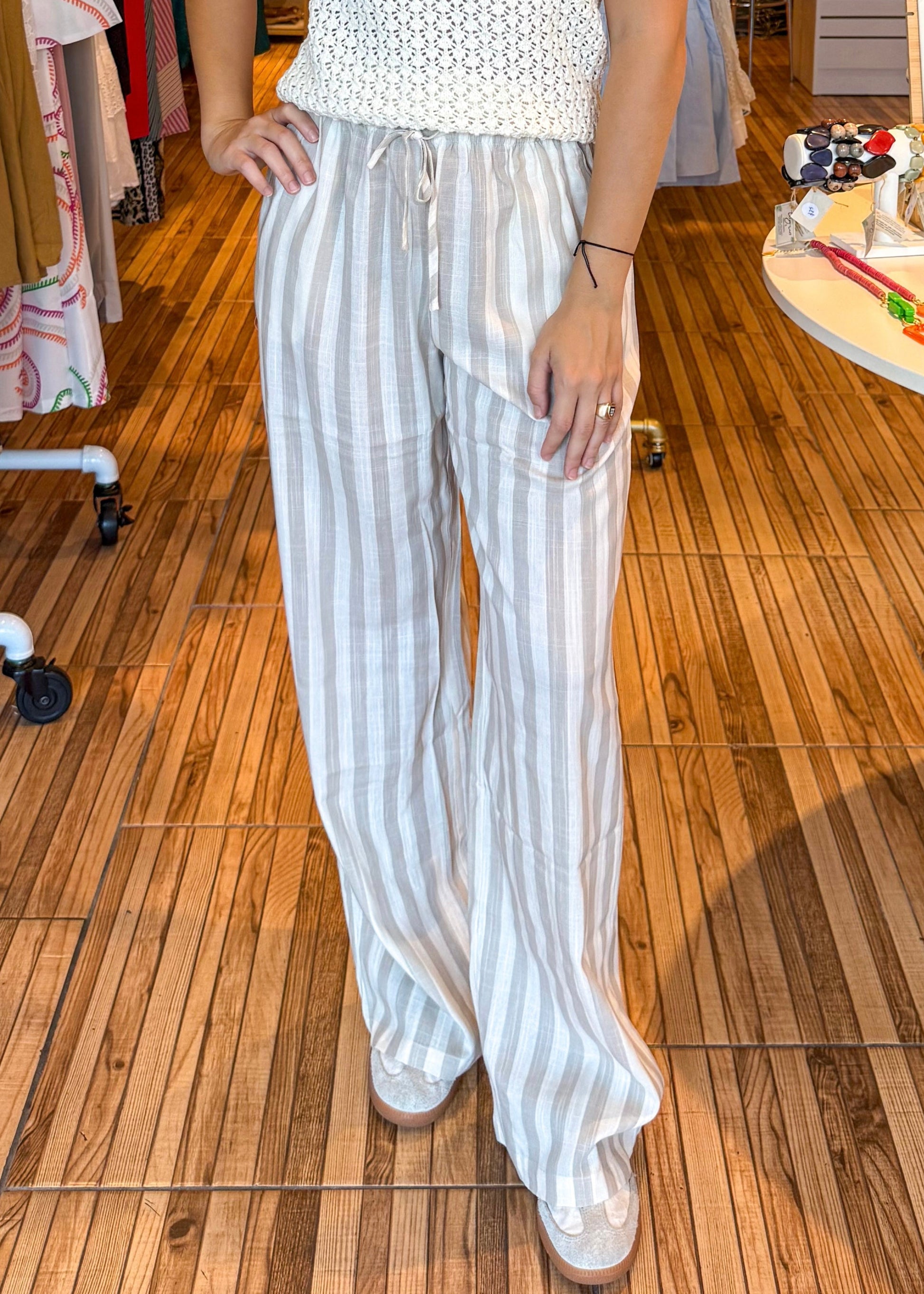 Ana Taupe Striped Pants